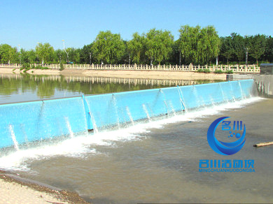 橡膠壩使用壽命短(橡膠壩采用的是再生橡膠原料,壩袋易老化,容易被上游漂浮物或尖銳物損壞,從而降低使用壽命);運(yùn)行管理難度大(洪水過后一旦壩面淤積較厚,要求人工清理,否則壩袋不能正常升起蓄水,增加了后期的人工費(fèi)用)。充水式橡膠壩冬季冰凍容易損壞壩袋,而充氣式橡膠壩不能調(diào)節(jié)壩高。